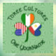 Kleeblatt zur Feier philippinischer Feiertage, irischer Feiertage wie St Patrick's Day oder Feiertage in den USA wie Unabhängigkeitstag oder 4. Juli. Das Kleeblatt hat in jedem Blatt eine andere Fahne. Eine für die Philippinen, eine für Irland und eine für die USA. Die Worte oben lesen DREI KULTUREN. Die folgenden Wörter lesen EINEN YOURNAMEN. Fügen Sie Ihren Namen an der richtigen Stelle für einen personalisierten Look hinzu. Für ein individuelles Geschenk einfach den Namen eines anderen hinzufügen. Wörter zeigen dunkelgrün, keltischer Stil, kreisförmige Buchstaben. Hintergrund sind hellgrüne Quadrate.
