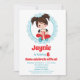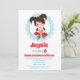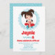 Die Geburtstagseinladung dieses Mädchens enthält ein niedliches brünettes, haariges Filmabendmädchen mit einer Kiste Popcorn. Türkisblau, rot und weiß.