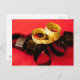 Gelb gibt vor einem roten Hintergrund ein Ticket auf einer unberührten Filmrolle zu. Diese Postkarte ist vollständig anpassbar.