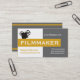 Filmmaker graue, weiße, goldene, braune Visitenkarte mit einer 35-mm-Filmkamera in Schwarz auf weiß, grauem Hintergrund und einer goldbraunen Band mit dem Text "FILMMAKER". Eine großartige berufliche Visitenkartenvorlage für Filmemacher, Regisseur, Filmemacher, Filmproduzent, Filmproduzent, Filmproduzent, Videoproduzent, Kameramann oder Kameramann.