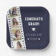 Feiern Sie mit diesem Blue Filmstrip Four Foto Collage Abschluss Paper Plate Ihr Studentenzimmer. Filmstreifen aus Papierplatte und vier Foto-Platzierungen, Dekorationen mit Graduierungsmütze mit elegantem Drehbuch und Typografie. Mit diesem Design sind zusätzliche Party-Liefermengen für offene Häuser verfügbar.