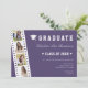 Mit diesem Lila Filmstrip Four Foto Collage Abschluss Open House laden Sie zu einer Kinderabschlussfeier ein. Das Einladungs-Design umfasst einen Filmstreifen und vier Foto-Platzierungen, Dekorationen mit Graduierungsmütze mit elegantem Drehbuch und Typografie. Fügen Sie Fotos hinzu und öffnen Sie die Hausdetails, um sie anzupassen. Die Hintergrundfarbe auf der Rückseite der Einladung kann geändert werden, um das Foto zu ergänzen oder um die Schulfarbe hinzuzufügen.