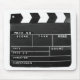 Entwerfen Sie die Aufmachung eines clapperboard, wie bei der Film-/Filmherstellung verwendet. Das Scharnierventilbrett, weiß auch, während ein Scharnierventil, eine Schindel, ein Schiefer, ein Schieferbrett, ein slapperboard, ein Synchronisierungsschiefer, ein Zeitschiefer, Stöcke, ein Brett und ein Ton, benutzt wird, um Bild und Ton zu synchronisieren, und Szenen zu beziehen, wenn es Filme oder Aufnahmen für das Kino oder das Fernsehen macht. Großes Bild für Fans des Filmes, der Filme, des Hollywood, des Kinos, der Filmherstellung oder der Kamera- und Filmherstellungsfans.