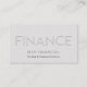 Ein modernes, einfaches und elegantes Visitenkartendesign, das ein Imitat mit Prägung - das Wort "FINANCE" über einem texturierten Papierhintergrund - bietet. Die moderne und elegante, einfache schwarz-weiße Visitenkarte ist genauso elegant wie raffiniert. Diese minimalistische Visitenkarte ist ideal für Kreditfachleute in der Finanzbranche: Händler, Händler, Kreditberater und Berater, Kreditreparaturspezialisten etc.