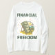 This tee let's you relax in abundance. This “Financial Freedom” long sleeve t-shirt features a stack of bills lounging on a beach chair under the sun, framed by bold “Financial” and “Freedom” text. A vibrant symbol of wealth, independence, and lifestyle goals.