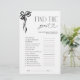Das Hotel Find the Guest ist ein raffiniertes Eisbrecher, das die Gäste mit dem mühelosen Charme verzaubern und jedes Brautparty in eine lebendige und vernetzte Ansammlung verwandeln soll. Mit einer Reihe von eindrucksvollen Aufforderungen ermuntert dieses Spiel die Gäste dazu, sich zu vereinen, Geschichten zu teilen und lustige Fakten über einander zu entdecken - während sie gleichzeitig die zukünftige Braut feiern. Die zarte schwarze Farbbandabgebildet und die klassische Typografie verleihen dieser Touch schlichte Eleganz und sorgen dafür, dass sie sich nahtlos in eine anspruchsvolle Veranstaltungslandschaft einfügt. Dieses Spiel ist perfekt für Brautpartys, Verlobungsfeiern oder auch Proben-Dinners geeignet, um unvergessliche Gespräche und sinnvolle Verbindungen zu schaffen. Ob Gäste sich zum ersten Mal treffen oder alte Freundschaften wiederbeleben, diese Aktivität fördert eine Atmosphäre der Wärme und Kameradschaft. Für passende Designs, Alternativfarben oder personalisierte Anpassungen ist der Designer gerne bereit, zusammenzuarbeiten, um die zusammenhängende Ästhetik Ihrer Veranstaltung zu verbessern. Copyright Anastasia Surridge, alle Rechte vorbehalten.