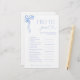 Das Hotel Find the Guest ist ein raffiniertes Eisbrecher, das die Gäste mit dem mühelosen Charme verzaubern und jedes Brautparty in eine lebendige und vernetzte Ansammlung verwandeln soll. Mit einer Reihe von eindrucksvollen Aufforderungen ermuntert dieses Spiel die Gäste dazu, sich zu vereinen, Geschichten zu teilen und lustige Fakten über einander zu entdecken - während sie gleichzeitig die zukünftige Braut feiern. Die zarte blaue Farbbandillustrierung und die klassische Typografie fügen eine Touch schlichter Eleganz hinzu und sorgen dafür, dass sich das Stück nahtlos in eine anspruchsvolle Veranstaltungslandschaft einfügt. Dieses Spiel ist perfekt für Brautpartys, Verlobungsfeiern oder auch Proben-Dinners geeignet, um unvergessliche Gespräche und sinnvolle Verbindungen zu schaffen. Ob Gäste sich zum ersten Mal treffen oder alte Freundschaften wiederbeleben, diese Aktivität fördert eine Atmosphäre der Wärme und Kameradschaft. Für passende Designs, Alternativfarben oder personalisierte Anpassungen ist der Designer gerne bereit, zusammenzuarbeiten, um die zusammenhängende Ästhetik Ihrer Veranstaltung zu verbessern. Copyright Anastasia Surridge, alle Rechte vorbehalten.