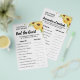 Finden Sie das Gast Englisch und Spanisch Version Spiel inklusive (vorne und hinten). Fügen Sie der Vorlage für die deutsche und spanische Mama Name hinzu. Für weitere Anpassungen (andere Formulierungen, Schriftart, Stil des Schriftartes), klicken Sie auf Personalisieren, scrollen Sie nach unten und klicken Sie auf den Link "Klicken Sie auf, um weiter anzupassen". HOW TO PLAY: Ein großartiges Spiel und Aktivität, um Ihre Gäste zu haben, sich zu kennen! Die Gäste finden die Antwort auf die Fragen, die im Gespräch mit anderen Gästen aufgeführt werden, und schreiben den Namen des Gastes in der rechten Spalte auf.