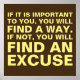 Motivierend Zitat-Poster in hellgelber Farbe mit braunem Hintergrund. Der Text lautet: " Wenn es für Sie wichtig ist, finden Sie einen Weg. Wenn nicht, finden Sie eine Entschuldigung." Sie können die Farbe von Text und Hintergrund nach Ihren Vorlieben anpassen.