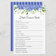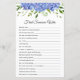 Dieses Finde Jemand Wer Spielblatt bringt viel Spaß und Lachen zu Ihrer Veranstaltung! Die Gäste werden sich dadurch besser kennenlernen, wenn sie versuchen, in jede Kategorie einen passenden Partner zu finden. Dieses Spiel ist keine einfache Aufgabe, und Ihre Gäste werden es spielen lassen! Du wirst schockiert sein, was du voneinander lernst. Die Seite ist wunderschön mit mehrfarbigen, blauen Hydrangeas, natürlicher Vegetation und dem passenden blau gestreiften Rücken.