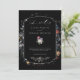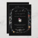 Dieses schicke, Save the Date gestaltete Design besticht durch ein holländisches Stillleben aus dem 18. Jahrhundert mit weißen, roten und goldfarbenen Tulpen und Wildblumen auf schwarzem Hintergrund mit individuellem Zierschild, ergänzender Blumengrafik und eleganter, fließender Kalligrafie. Auf der Rückseite befindet sich ein optionaler Blumenkranz mit Monogramm-Vorlage.