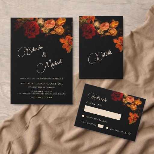 Fine Art Flowers Dark Wedding Folieneinladung