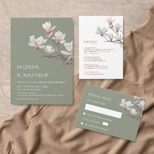 Fine Art Magnolia Casual Wedding Einladung