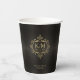 Filigree Rahmen und Ornamente, die in Imitaten mit Goldfolie strukturiert sind, schmücken die Stücke dieser eleganten Hochzeitssuite. Ein texturierter Effekt-Hintergrund in warmem Holzkohle und verziertem Rahmen, um Ihre Initialen und das Hochzeitsdatum zu halten, fügt die Touchs zum Ende dieses Papierbechers-Designs hinzu. Fügen Sie eine persönliche Dankeschön-Nachricht mit der bereitgestellten Vorlage hinzu. Suchen Sie ID871 um die komplette Hochzeitskollektion und andere Farbauswahl für dieses Design zu sehen.