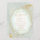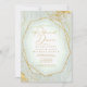 Ein Aquarellhintergrund in den Farbtönen von Salbei Grün wird von einem abstrakte von edlen Goldlinien und glitzernden Lichteffekten überragt, um die Teile dieser wunderschönen Hochzeitssuite zu kreieren. Die Probe Dinner Einladung hier zeigt auch einen schönen Gradientenrahmen, um Ihren gesamten Text zu halten. Fügen Sie einfach Ihre eigenen Namen, das Hochzeitsdatum und die Veranstaltungsdetails mit der bereitgestellten Vorlage hinzu. Suchen Sie ID867, um weitere Teile und Farboptionen für dieses Set zu sehen.
