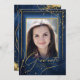 Ein Aquarellhintergrund in Schattierungen von Royal Blue bis Marine wird durch ein abstrakte von edlen Goldlinien und glitzernden Lichteffekten ergänzt, um diesen Abschluss zu schaffen. Die Karte verfügt auch über eine elegante Kalligraphie und einen Gradientenrahmen, um Ihr Foto zu halten. Fügen Sie ganz einfach Ihre persönlichen Ereignisdaten mit der bereitgestellten Vorlage hinzu. Suchen Sie ID867, um weitere Teile und Farboptionen für dieses Set zu sehen.