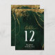 Ein Aquarellhintergrund in smaragdgrünen Farbtönen wird durch ein abstrakte von edlen Goldlinien und glitzernden Lichteffekten überragt, um die Teile dieser wunderschönen Hochzeitssuite zu kreieren. Die hier gezeigte Hochzeitskarte bietet auch eine elegante Kalligraphie und eine Vorlage, um Ihre eigenen Namen, Hochzeitstag und Tischnummern leicht hinzuzufügen. Suchen Sie ID867, um weitere Teile und Farboptionen für dieses Set zu sehen.