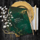 Ein Aquarellhintergrund in smaragdgrünen Farbtönen wird durch ein abstrakte von edlen Goldlinien und glitzernden Lichteffekten überragt, um die Teile dieser wunderschönen Hochzeitssuite zu kreieren. Die hier gezeigte Hochzeitskarte "Einladung" enthält auch einen nicht zentrierten Text und eine feine goldene Masche auf der Rückseite. Fügen Sie einfach Ihre eigenen Namen, das Hochzeitsdatum und die Veranstaltungsdetails mit der bereitgestellten Vorlage hinzu. Suchen Sie ID867, um weitere Teile und Farboptionen für dieses Set zu sehen.