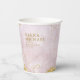 Ein Aquarellhintergrund in Farbtönen von weicher Lavendel bis Lila wird von einem abstrakte edler Goldlinien und glitzernden Lichteffekten überragt, um die Teile dieser wunderschönen Hochzeitssuite zu kreieren. Der hier gezeigte Hochzeitspapier-Becher enthält auch einen nicht zentrierten Text und eine Vorlage, in der die Namen der Braut und des Bräutigams, das Hochzeitstag und eine Danksagung an Ihre Gäste enthalten sind. Suchen Sie ID867, um weitere Teile und Farboptionen für dieses Set zu sehen.