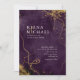 Ein Aquarellhintergrund in Pflaumentönen lila wird von einem abstrakte von edlen Goldlinien und glitzernden Lichteffekten überragt, um die Teile dieser wunderschönen Hochzeitssuite zu kreieren. Die hier gezeigte Hochzeitskarte "Einladung" enthält auch einen nicht zentrierten Text und eine feine goldene Masche auf der Rückseite. Fügen Sie einfach Ihre eigenen Namen, das Hochzeitsdatum und die Veranstaltungsdetails mit der bereitgestellten Vorlage hinzu. Suchen Sie ID867, um weitere Teile und Farboptionen für dieses Set zu sehen.