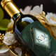 Ein Aquarellhintergrund in smaragdgrünen Farbtönen wird durch ein abstrakte von edlen Goldlinien und glitzernden Lichteffekten überragt, um die Teile dieser wunderschönen Hochzeitssuite zu kreieren. Das hier gezeigte Hochzeitsweinetikett zeichnet sich auch durch einen Farbverlauf, einen diamantförmigen Rahmen aus, in dem die Initialen der Braut und des Bräutigams und das Hochzeitsdatum gehalten werden. Sie haben auch die Möglichkeit, den Weintyp und eine persönliche Nachricht mit der angegebenen Vorlage hinzuzufügen. Suchen Sie ID867, um weitere Teile und Farboptionen für dieses Set zu sehen.