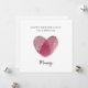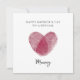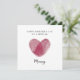 Feiern Sie die Liebe zwischen einer Mutter und ihrem Kind mit dieser eleganten Fingerabdruck-Herz-Muttertags-Karte. Mit einem schönen roten Fingerabdruck-Herz, das eine einzigartige und unzerbrechliche Verbindung symbolisiert, ist diese minimalistische und moderne Grußkarte perfekt, um Ihrer Mummy zu sagen, wie besonders sie ist. Ideal von Tochter oder Sohn, wird dieses herzliche Design zu einem bedeutungsvollen Erinnerungsstück, das sie für immer in Ehren halten wird. Eine durchdachte und stilvolle Karte, um den Muttertag besonders zu machen.