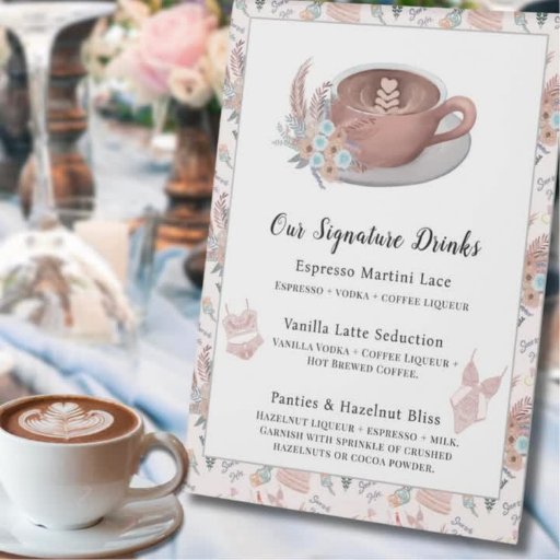 Diese Brautdusche aus Lingerie & Lattes präsentiert eine elegante Hochzeitsesserie, eine gemütliche Latte und bohelle Blumen und schafft ein charmantes und stilvolles Design. Die Rückseite ist mit einem wunderschönen Brautparty-Muster mit Hochzeitskuchen, zarten Dessous-Stücken, Blumen und vielem mehr ausgestattet und verleiht dem Ganzen eine skurrile Touch.