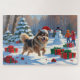 Finnischer Lapphund Running Snow mit Weihnachtshut Puzzle