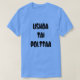Ein blauer T - Shirt mit einem finnischen Text: Uskoa tai polttaa, der übersetzt werden kann in: glauben oder brennen. Holen Sie sich diesen T - Shirt, der Ihnen ein einzigartiges und anderes Aussehen geben wird. Sie können diesen T - Shirt anpassen, um ihm ein einzigartiges Aussehen zu verleihen.