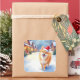 Finnish Lapphund Snowy Village Santa Hat Christmas Quadratischer Aufkleber