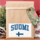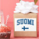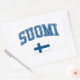 Typ "Finnland" und nationale Flagge in einem sauberen Stil. Das Wort FINLAND ist Set in einer kollegialen Schrift in einem Bogen über einem Bild der finnischen Flagge. Die finnische Flagge , auch Siniristilippu genannt, stammt aus dem Anfang des 20. Jahrhunderts. Auf weißem Hintergrund steht ein blaues nordisches Kreuz, das das Christentum repräsentiert.