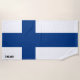 Finnland Flag Splendid Patriotic Beach Handtuch mit der finnischen Flagge gedruckt auf dem Handtuch. Die nationalen Flaggenfarben werden durch den Text "Finnland" unten ergänzt. Der Text kann mit der Funktion "Anpassen!" vollständig angepasst werden. Fühlen Sie sich frei, es zu ändern, zu entfernen oder Ihre eigenen hinzuzufügen. Dieses charmante Design ist das atemberaubende Geschenk und der ideale Partner für den sonnigen Tag am Strand. © CountriesOfTheWorld