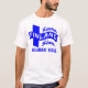 blauer/weißer Druck, kleiner auf der Rückseite. Wählen Sie die Art Ihres Shirts vor und färben Sie.