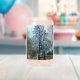 An autumn art design of a fir tree and a person enjoying some peace and quiet.