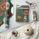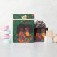 Gifts and Decor: Interspersed are classic Christmas elements like wrapped gifts, stars, Christmas trees, and mugs of cocoa, all rendered in a bold, rich color palette.