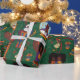 This is a vibrant and culturally rich seamless wrapping paper pattern featuring a medley of African American-inspired Christmas and Kwanzaa elements set against a deep, intricate green background. The background is filled with swirling, paisley-like patterns, adding a dynamic texture.