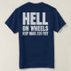 Malteserkreuz mit Feuer/Rettung auf links vorderem Kasten mit den Wörter Bruderschafts-amerikanischen Feuerwehrmännern über der Spitze und "diesen anderen kann in einer Rolle auf der Unterseite des Kreuzes leben". Auf der Rückseite in großer mutiger Buchstaben HÖLLE AUF RÄDERN BEHALTEN Sie ZURÜCK 200 FUSS