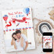 Passen Sie diese Rot-Weiß- und Blauer-Schwangerschaftsankündigung mit Ihrem eigenen Foto und Ihrer eigenen Botschaft an. Das Design enthält den Wortlaut "Red White & Blue a Firecracker is Due" mit US Flagge und Heißluftballons. Die Vorlage ist Set für Sie, um Ihr Foto auf der Kartenvorderseite und Ihre benutzerdefinierte Nachricht auf der Rückseite hinzuzufügen. Niedlich amerikanisches Thema und perfekt für die 4. Schwangerschaftsankündigungen.
