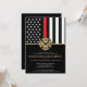 Dieses Design ist mit einer Feuerwehrflagge mit schwarz-weißen Streifen und einem dünnen roten Streifen versehen. Das Abzeichen eines Feuerwehrmanns liegt über allen Party-Details für den geschlossen Feuerwehrmann. Dieses Design eignet sich auch hervorragend für einen pensionierten Feuerwehrmann, Leutnant oder das Party für das Ruhestand.