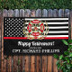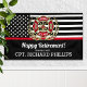 Ein lustiges Feuerwehrflaggendesign mit Ihren persönlichen Glückwünschen zum Ruhestand. Verziert mit einem edlen Gold und einem roten Malteschneid und Lorbeerkranz.