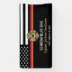 This design features a firemen's flag with black and white stripes, and a thin red line stripe as well. "Congratulations" and a fireman's badge sits above the name of the graduating or retiring firefighter, lieutenant, or chief. Celebrate in style!