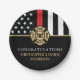This design features a firemen's flag with black and white stripes, and a thin red line stripe as well. "Congratulations" and a fireman's badge sits above the name of the graduating or retiring firefighter, lieutenant, or chief. Celebrate in style!