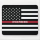 Zeigen Sie Ihre Unterstützung mit diesem schwarz-weißen Feuerwehrmann dünne rote Linie American Flag Mauspad.