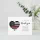 Thin Red Line Firefighter Dankeschön Karte - Amerikanische Flagge in Firefighter Flag Farben, gestresstes Design auf weiß. Zeigen Sie Ihre Wertschätzung für einen hervorragenden Feuerwehrmann oder Feuerwehrmann mit dieser dünnen roten Linie Dankeschön-Karte, ideal für Feuerwehrleute, Feuerwehrleute, Feuerwehr und Feuerwehr, und Feuerwehr. Zitat: "Zwei kleine Worte Danke, im Vergleich zu allem, was Sie tun, so klein, aber sie kommen aus dem tiefsten Teil unseres Herzens." COPYRIGHT © 2020 Judy Burrows, Black Dog Art - Alle Rechte vorbehalten. Firefighter Thin Red Line Flag Herz Vielen Dank Postcard