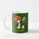 Niedliches Märchen inspirierte Abbildung eines Froschprinzen, der auf einem Pilz sitzt und die Glühwürmchen beobachtet. Whimsical Waldfrosch themed Tasse ist anpassbar und erlaubt Ihnen, Ihren Namen hinzuzufügen!