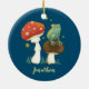 Niedliches Märchen inspirierte Abbildung eines Froschprinzen, der auf einem Pilz sitzt und Glühwürmchen sieht. Dieses bezaubernde Froschdesign sieht so aus, als ob es aus einem Kindergeschichten-Buch stammt. Sie können diesen Schmuck personalisieren, indem Sie Ihren Namen!