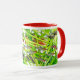 Firehead tetraなどの小型の熱帯魚の写真で構成したマグカップです。水草の葉の隙間からは小さな魚を狙う大きな魚も見えています。なお、このマグカップは、魚の背景に明るい緑色の水草(=Eichhornia azurea)を敷いているので、とても明るい印象の製品になりました。 ( Photo & Designed by KOBAYASHI,Michinobu )
