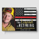 Dieses Design verfügt über eine Feuermelder mit schwarz-weißen Streifen und einen dünnen roten Streifen. Der Text "The Legend is Retiring" steht über dem Namen des pensionierten Feuerwehrmanns, Lieutenant oder Chefs. Feiern Sie stilvoll! Mit einem Foto des ausscheidenden Feuerwehrmanns können Sie sich noch weiter anpassen.