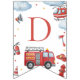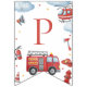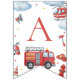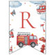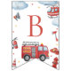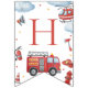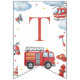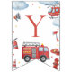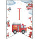 Firetruck-themed “Happy Birthday” banner featuring adorable watercolor fire engines, helicopters, clouds, and emergency icons. Perfect decoration for a firefighter or firetruck birthday party. Ideal for boys’ first birthday, toddler parties, and rescue vehicle celebrations. Coordinates with matching firetruck invitations, napkins, thank you tags, and party décor.