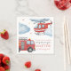 Cute firetruck birthday party napkin featuring watercolor fire engine, rescue helicopter, clouds, and fun emergency-themed details. Perfect for a firefighter or firetruck-themed first birthday celebration. Personalized with your child’s name and matching party decorations. Ideal for boys’ birthday parties, fire station themes, and rescue vehicle party supplies.